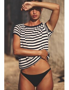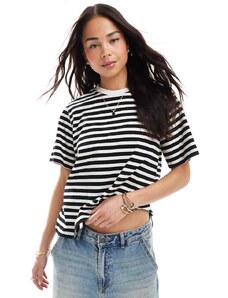 Gina Tricot pure cotton basic long sleeve t-shirt in navy and white stripe-Black
