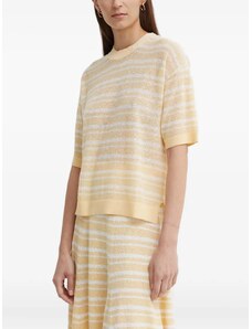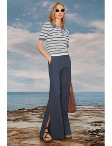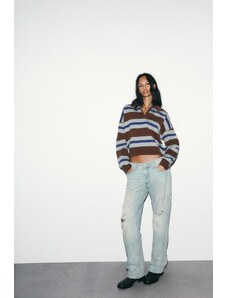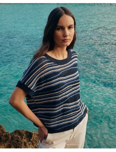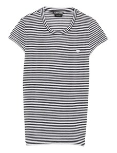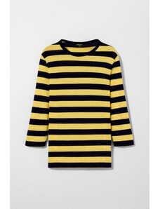 ARKET oversized long sleeve jersey t-shirt with open v neck and side splits in navy and white stripes-Multi