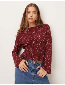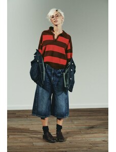 Wanderdoll Frankie premium heavyweight jersey collar detail long sleeve polo top co-ord in brown stripe-Multi