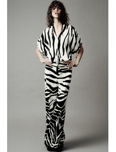 Esmee Exclusive sheer tie front beach top with ruffle trim in zebra-Multi
