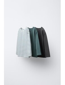 ZARA PACK OF THREE STRIPED AND PLAIN T-SHIRTS Petrol blue 1-3 months (62 cm)