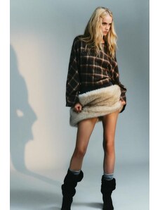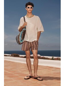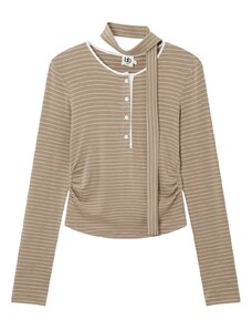 Kaiia exclusive super soft jersey button through long sleeve top co-ord in brown and blue stripe-Multi