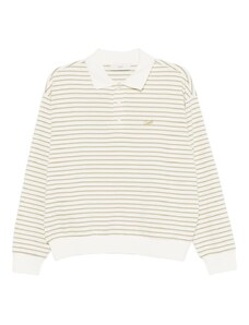 Wanderdoll Frankie premium heavyweight jersey contrast collar long sleeve polo top co-ord in cream stripe-Multi