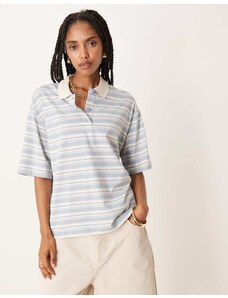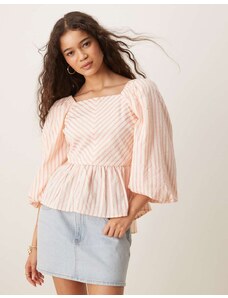 YAS tie back puff sleeve peplum hem top in pink and cream stripe-White
