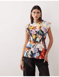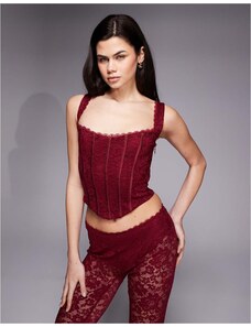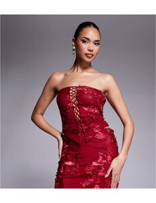Murci exclusive mesh bandeau lace up top co-ord in textured red floral applique