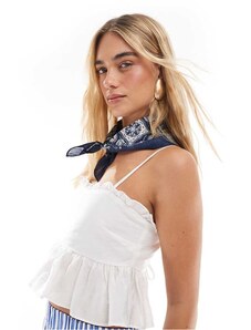 The Frolic exclusive ruffle trim tie back babydoll cami top in white