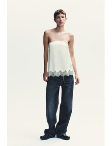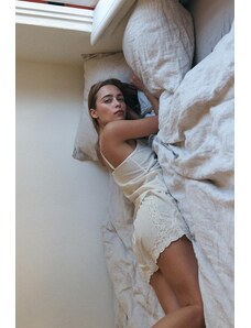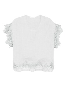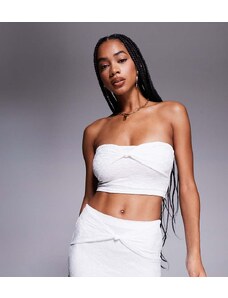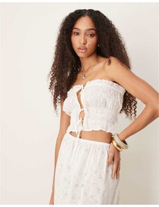 4th & Reckless x Luana Barron contains linen lace trim cropped cami beach top co-ord in white