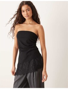Kaiia exclusive double layered slinky gathered one shoulder lace top co-ord in black