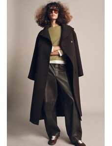 Kaiia exclusive super soft jersey button through long sleeve top co-ord in brown and blue stripe-Multi