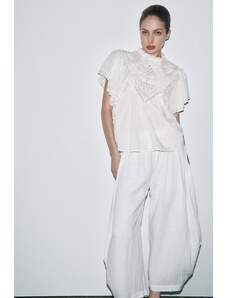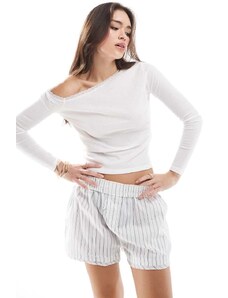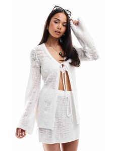 ASOS LUXE co-ord embroidered long sleeve top with ruffle detail in cream-White