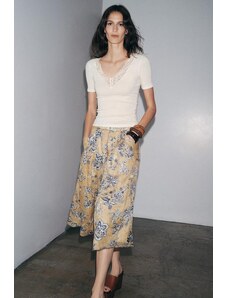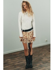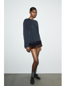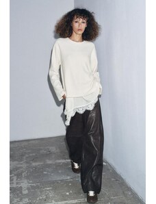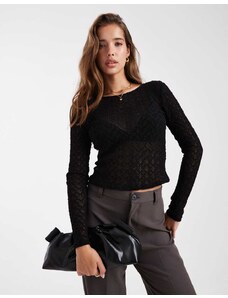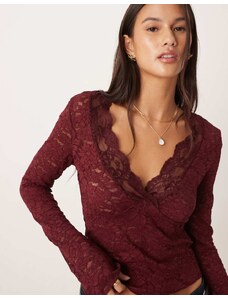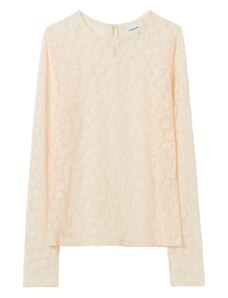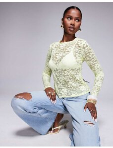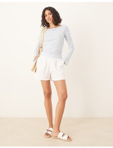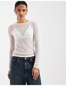 Gina Tricot sheer structured long sleeve lace jersey top with fluted sleeves in light blue