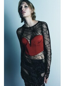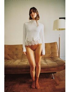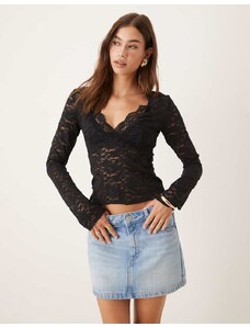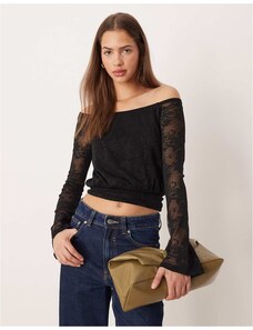AFRM off the shoulder long sleeve lace bodysuit in black