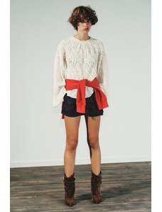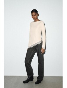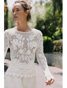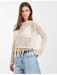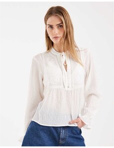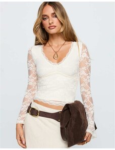 Princess Polly Pitter lace sheer sleeve v neck scallop trim top in cream-White