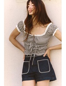 I.AM.GIA Yvette v neck butterfly pattern lace logo flare sleeve top co-ord in navy