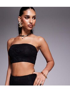 Murci exclusive mesh bandeau lace up top co-ord in textured red floral applique