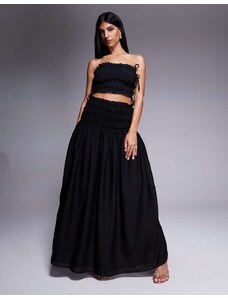 Wanderdoll Soulie linen look ruffle trim tie detail shirred bandeau top co-ord in black