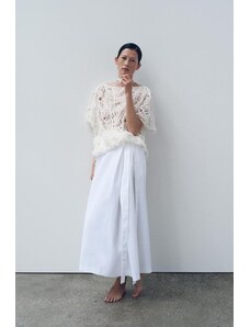 The Frolic exclusive tile crochet tie front beach top co-ord in cream-White