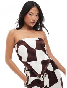 4th & Reckless Petite satin cropped bandeau scarf top co-ord in brown geo print-Multi