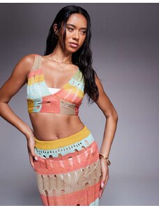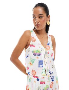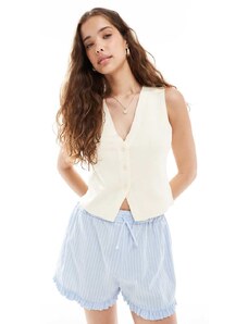 The Frolic x Lydia Kara exclusive crochet contrast thread trim beach waistcoat top co-ord in cream-White