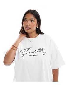 4th & Reckless Plus oversized embroidered logo t-shirt in white