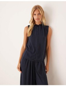 Princess Polly Amalthea halterneck tie front detail top in dark blue check