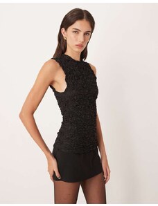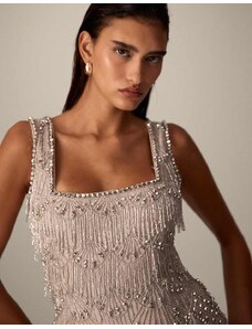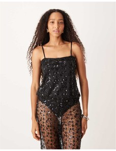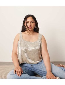 ARRANGE Curve embellished beaded square neck boxy crop top in silver