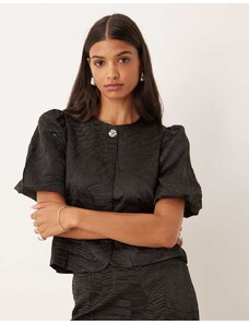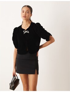 Gina Tricot short sleeve velvet velour blouse with silver dimonte bows in black
