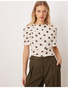 Wanderdoll Soulie linen look ruched tie back crop top co-ord in mocha-Brown