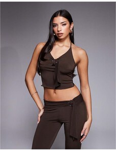 Princess Polly No Hard Feelings slinky twist open front halterneck top in brown