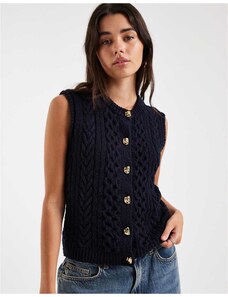 4th & Reckless chunky cable knit gold button sleeveless vest in navy-Blue