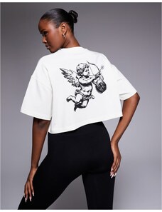 4505 Icon cropped heavyweight cotton t-shirt with back print in vintage white - CREAM