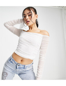 Princess Polly Segarra slinky long sleeve peplum v neck crop top in white