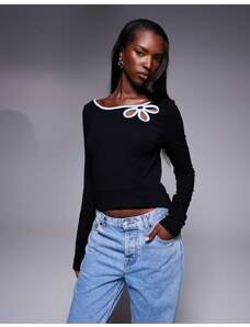 AFRM sheer high neck angel ruffle sleeve diamante detail top with mesh bra in black