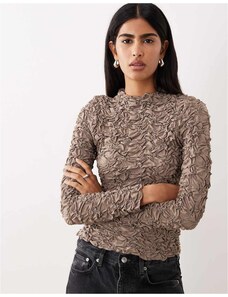 4th & Reckless textured knit tie front detail long sleeve top co-ord in oat-Neutral