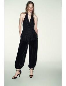 I.AM.GIA Onyx halterneck contrast tie eyelet detail crop top co-ord in black and red