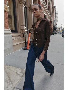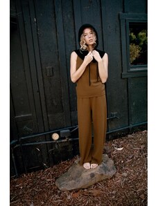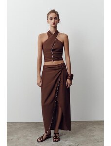 I.AM.GIA Siofra metal hardware drape detail cropped cami top co-ord in brown