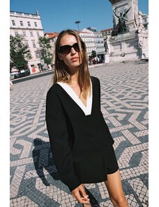 I.AM.GIA Yvette v neck butterfly pattern lace logo flare sleeve top co-ord in navy