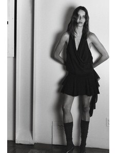 Wanderdoll Tate sculpting second skin plunge neck ruched detail sleeveless bodysuit in black