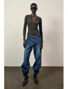 Princess Polly Passoni ribbed asymmetric popper detail long sleeve top in black