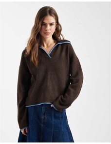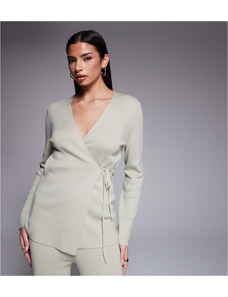 The Frolic exclusive mesh overlay asymmetric shoulder scarf wrap around detail top co-ord in chocolate polka dot-Brown