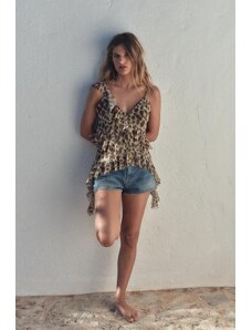 Princess Polly Numb mesh v neck tie front cami top in black floral