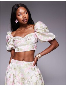 ASOS LUXE co-ord jacquard puff sleeve top in tulip jacquard-Multi