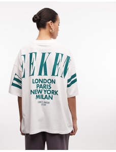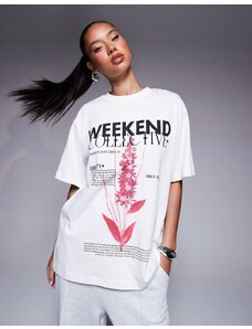 ASOS Weekend Collective Weekend Collective Icon oversized t-shirt with stacked back logo in cream-White