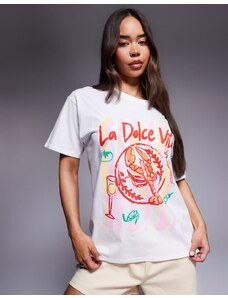 Kaiia exclusive cotton La Dolce Vita lobster graphic oversized t-shirt in white