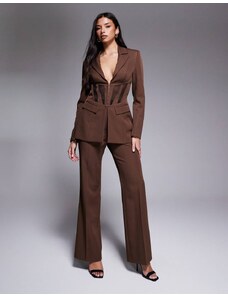 SNDYS tailored wide leg trousers co-ord in chocolate-Brown