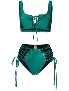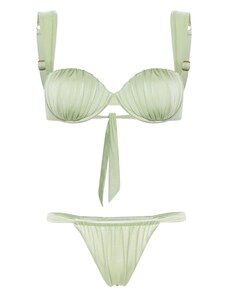 The Frolic exclusive contrast bow rose trim cupped bikini top co-ord in green and blue check-Multi