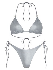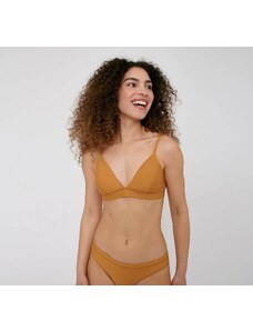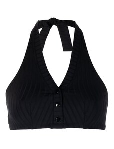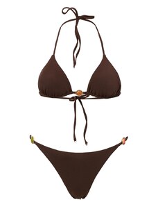 The Frolic exclusive crinkle bead front scoop halterneck bikini top co-ord in chocolate-Brown