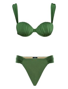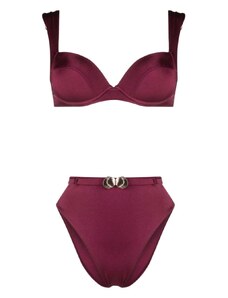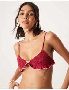 4th & Reckless underwire gold metal detail bikini top co-ord in burgundy-Red