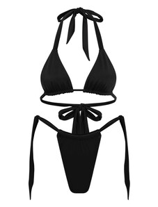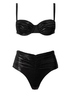 4th & Reckless crinkle gold shell hardware high leg brazillian bikini bottom co-ord in black