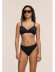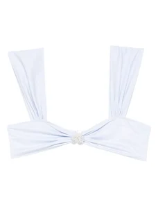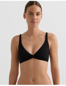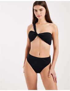 The Frolic exclusive crinkle metal flower trim scoop neck bikini top co-ord in black